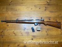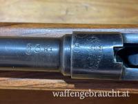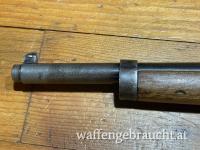 Bergmann Destroyer Karabiner im Kaliber 9mm Bergmann. Kein Neubeschuss, nur ein alter kleiner Händlerstempel "FWW" (Frankonia Waffen Würzburg). Im vorderen Bereich des Laufes ist die Brünierung vom Gebrauch leicht abgerieben. Der Lauf ist sehr schön.