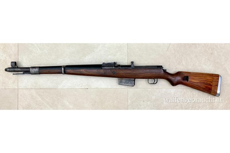 Verkaufe Gewehr 41 aus Fertigung Walther, sehr frühe ac über 43 Codierung am System, Seriennummer ohne Buchstabe. Die Waffe ist soweit ersichtlich nummerngleich und hat einen verdeckten deutschen Neubeschuss. Der Schaft wurde nach dem 2. Weltkrieg leider einmal gekürzt, der Vorbesitzer hat ihn dann wieder auf die Originallänge zurückbauen lassen. Abseits davon unberührt. Guter Lauf. Seltene Version mit Schienen für die ZF40 Montage am System. In Österreich eine Schusswaffe der Kategorie B (fest integriertes 10 Schuss Magazin), daher Waffenbesitzkarte oder Waffenpass erforderlich. § 41f WaffG findet, sofern kein aufrechter Besitz Kat.B oder Waffenpass, ebenfalls Anwendung. Solange das Inserat online ist, ist die Waffe noch verfügbar. Ich habe die Waffe als reines Sammlerstück besessen und kann daher keine Aussage zur Schussleistung machen. Verkauf ins Ausland mittels Exporteur möglich (z.B. Firma Sodia in 1040 Wien), persönliche Übergabe wird aber bevorzugt. Verkauf erfolgt, da ich ein besseres Exemplar gekauft habe.