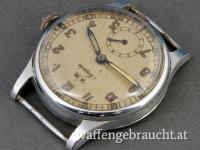 Das ist eine Marke des bekannten Schweizer Uhrenherstellers ** ALPINA ** bzw. Alpina Union Horlogerie S.A. und diese Uhr wurde in den 1940-er Jahren für die deutsche KRIEGSMARINE gebaut.