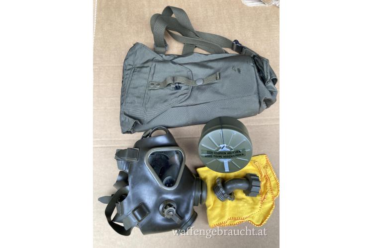 Verkaufe eine gebrauchte Dräger ABC Schutzmaske Größe 2, mit einem ABC Schutzmasken Filter, einem Kniestück und einer Schutzmaskentasche.