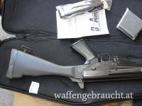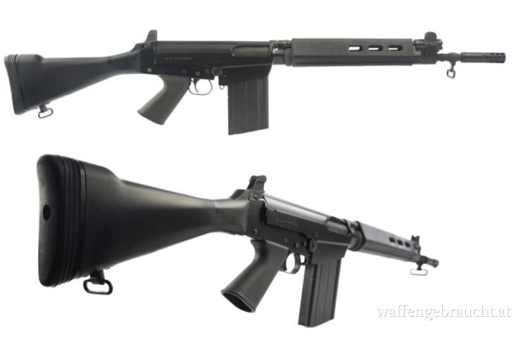 Auf den originalen StG58 Maschinen von DS Arms hergestellter, halbautomatischer Nachbau des FN FAL StG58 in der Ausführung "Bolivien" mit 16" langem, hartverchromtem Lauf und verstellbarem Gasblock.