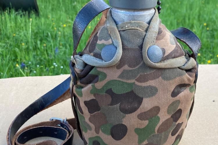 Verkaufe eine alte Feldflasche im K4 Erbsentarnmuster, wie sie von den Soldaten des österreichischen Bundesheeres zum Kampfanzug 57 getragen wurde.
