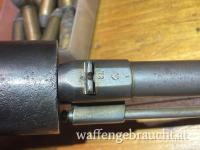 Der Laufzustand ist für das Alter noch recht gut, die Züge sind noch scharf mit ein paar Rostflecken. Allgemein bewerte ich den Laufzustand mit 2, er wäre noch ohne Probleme schießbar. Außen hat er ein paar leicht narbige Stellen und von der Brünierung ist nichts mehr übrig. Die Mechanik funktioniert einwandfrei.