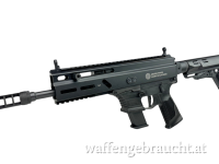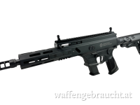 Das Gehäuse ist aus einem Stück Aluminium gefertigt und schwarz eloxiert. Auf der Ober-und Unterseite ist eine durgehende Picatinnyschiene, seitlich befinden sich M-Lok Schnittstellen um Zubehör aller Art zu befestigen. Der AR-15 Schubschaft ist aus hochfestem Polymer gefertigt. Serienmäßig ist die Waffe mit einer Klapp/- Dioptervisierung ausgestattet.