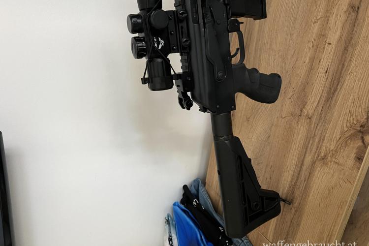 Halbautomatische Waffe total Umbau durch waffenmeister mit Anschlagschaft uvm. Zubehör kann hier nicht beschrieben werden.Auf 100meter eingeschossen,Zubehör über 1000€ wert.06641008560 Die Waffe ist mit jedem Glock Magazin kal.9mm zu bestücken,mit einem teuren Alukoffer versperrbar zu verkaufen.Der PREIS ist ohne ZUBEHÖR!nur für die Waffe ohne Zielfernrohr,Anschlagschaft,Kompensator,Zweibein uvm.