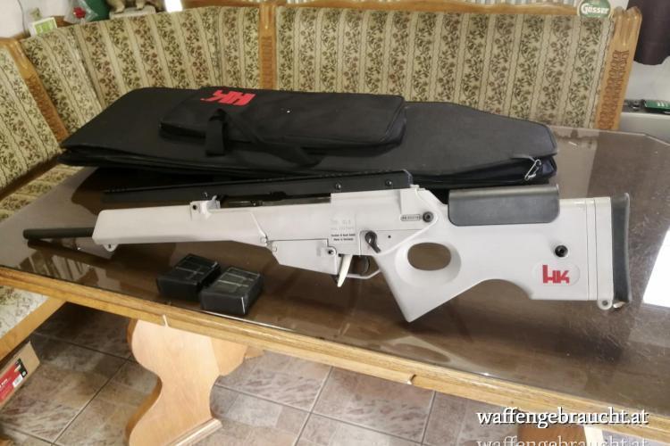 Heckler und Koch SL8 im Kaliber .223 Remington mit zweitem Magazin und Tragetasche