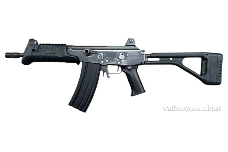 Achtung: Im eingeklappten Zustand kürzer als 60cm, daher jedenfalls Kat A. Durch die Lieferung mit 30 Schuss Magazin fällt es unter §17 (1) Z 8 (HA mit "großem" Magazin) anstatt unter Z11 (schnell verkürzbar).