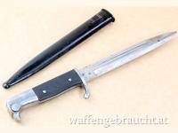 Verkaufe aus meiner privaten Sammlung das Ausgehbajonett (Paradebajonett) bzw. Seitengewehr für K98, in SELTENER kurzer Ausführung von E.Pack & Söhne SOLINGEN, Baujahr. ca. 1938 Original (geschliefen)