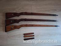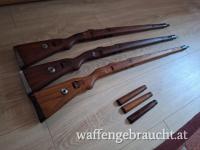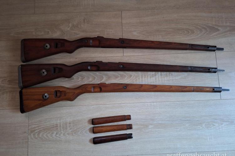 Verkaufe K98 Schäfte. Die zwei dunklen sind Jugoslawien Beuteschäfte, der helle Schaft wurde am Griffstück mit Holzstiften repariert. Schäfte sind wie zu sehen mit Metallteilen und Handschutz. Verkauf nur als Set. Privatverkauf.
