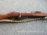 Steyr Mannlicher Karabiner 1895 für die niederländische Kavallerie, mit dem für die Kavallerie typischen löffelförmigen Kammergriff, Kal.: 6,5 x 57R, nummerngleich, die Systemhülse auf der linken Seite beschriftet mit: "HEMBRUG 1917", diverse Abnahmestempel, der Schaft aus Nußholz, sehr guter Erhaltungszustand, sehr seltene Sammlerwaffe.
