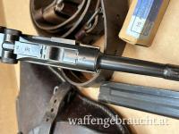Verkaufe eine nummerngleiche P08 der Mauserwerke. Codiert mit byf41. Guter Zustand inkl. einem nummerngleichen Magazin, originaler Tasche aus 1941 (Hersteller ce?), 3 zusätzlichen Magazinen aus dem 2. WK und die 2 am Foto ersichtlichen original verpackten und noch geschlossenen Munitionspackerl.