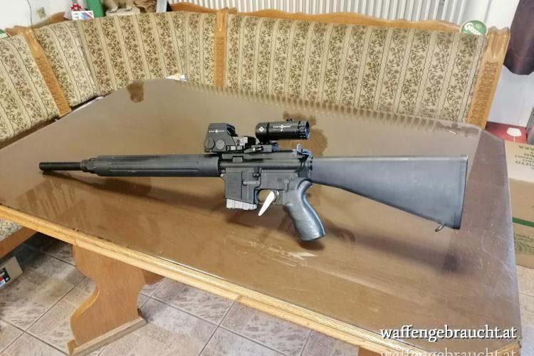Das Sight Mark Rotpunktvisier sowie die Vergrösserungseinheit sind neu. Die Lauflänge beträgt 50cm und die Schaftlänge beträgt 35cm.