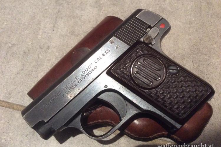 Pistole CZ Duo aus später Kriegsfertigung mit dazugehöriger Pistolentasche nach typisch deutscher Bauart. Kein Neubeschuss!