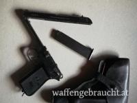 Biete Pistole Vz 38 mit Originalledertasche in der seltenen Bulgarienausfuehrung an. Die Pistole hat einen SA/DA-Abzug und eine zusätzliche seitliche Sicherung. Der Laufzustand ist sehr gut, äußerlich wurde die Pistole vermutlich vor längerer Zeit neu brueniert. Es sind keine Fremstempel oder Neubeschuss vorhanden, daher wird sie als Sammlerwaffe verkauft. Abgabe nur an Berechtigte(WP/WBK) und unter Nachweis des Besitzes einer Kat. B Waffe(aktueller ZWR-Auszug)