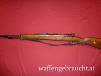 Repetierbüchse, Mauser - Oberndorf, Mod.: K98k, Kal.: 8x57IS, Nr.: 25838 (nummerngleich gemacht), Lauflänge: 600mm, aus verschiedenen überarbeiteten Teilen zusammengestellt, der Lauf neu, die Systemhülse beschriftet mit „byf" sowie der Jahreszahl „43" und diversen Abnahmestempeln, die Stahlteile brüniert, der Schaft aus Nußholz neu gefertigt und mit niederer Schaftkappe, gebraucht, sehr guter Erhaltungszustand, der Lauf innen spiegelblank, die Metallteile nun in sehr gutem Zustand, Wiener Beschuß