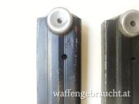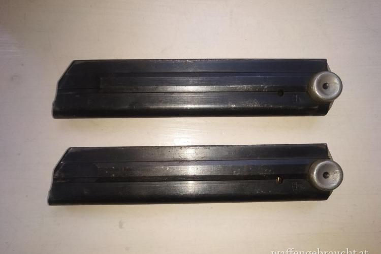 Ich biete 2 Stk Magazine für die Luger P08 in sehr gutem Zustand. Kriegsfertigung, Abgenommen und gehörten offensichtlich einmal zur selben Waffe (gleiche Nummer am Magazinboden).