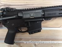 Die AR-556 SB Tactical SBA3 von RUGER ist eine äußerst kompakte Variante der klassischen AR15 Selbstladebüchse. Sie kommt im bewährten Kaliber .223 Rem. und verfügt über einen freischwingenden Lauf. Die Lauflänge beträgt ca. 26 cm, wodurch sie dem Schützen wesentlich mehr Beweglichkeit verleiht. Über M-LOK Module und die Picatinnyschiene ermöglicht es die Waffe, diverses Equipment an ihr zu befestigen. Die Waffe eignet sich sowohl für statische, als auch dynamische Anwendungsfelder.