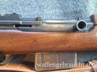 Verkaufen seltenen SAFN in der Scharfschützenausführung. Der Selbstlader wurde in Zuge des Egypt-Contract 1952-53 in einer Stückzahl von nur 1400 an Ägypen geliefert und hat am Hülsenkopf die ägyptische Königskrone. Die Besonderheit besteht aus der linksseitigen trapezförmigen Ausfräsung am Systemkasten zur Aufnahme der ECHO-Montage, sowie der originale Mündungsfeuerdämpfer welcher nur bei Scharfschützengewehren Verwendung fand. Scharfschützenglas und Montage sind leider nicht dabei. Lauf ist in schönem Zustand wie auch die gesamte Waffe.