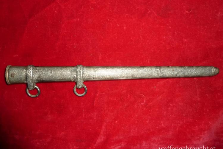 Scheide für Heeres oder Luftwaffendolch, Gesamtlänge: 284mm, breite der Öffnung: 20,2mm, die vermutlich versilberte Scheide magnetisch, gebraucht, die Scheidenbänder vermutlich später angelötet, fleckig