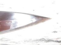 Das Bajonett befindet sich im originalen Zustand. Der Lack an der Scheide ist abgenutzt, was bei einem in Gebrauch befindlichen Bajonett normal ist. Die Klinge selbst ist absolut makellos und die Spitze wirkt auf den Bildern vielleicht etwas "kantig", ist aber in Wirklichkeit genau so, wie sie zum Zeitpunkt der Ausgabe war.