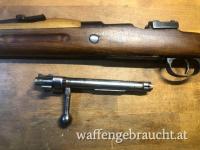 Züge und Felder gut, Lauf aber nicht blank, System und Verschluss nummerngleich, technisch in guten Zustand, Magazin ist blockiert - wurde in Deutschland auf Einzellader umgebaut, kann aber sicher mit etwas Geschick wieder behoben werden