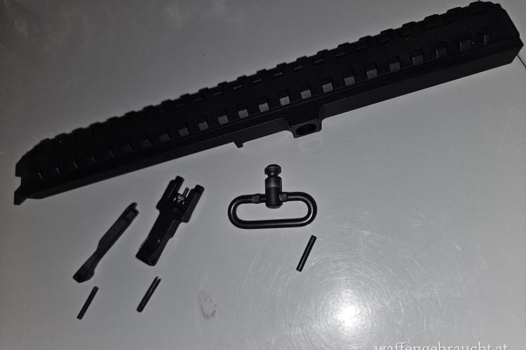 Verkaufe abgebildete STEYR AUG A3 Gehäuse Schiene + SWAT Kimme + Korn + Slingswivel. Alles neu und ungebraucht.
