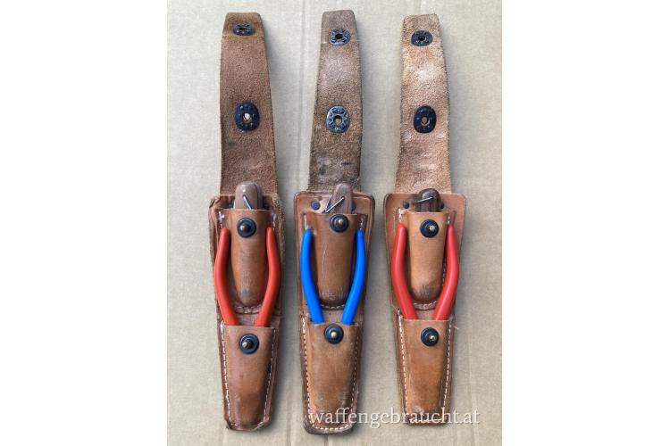 Verkaufe drei gebrauchte US Army TE-33 Fernmelder Gürtelwerkzeugsätze, bestehend aus einer CS-34 Gürteltasche, einem Klappmesser und einer Zange.