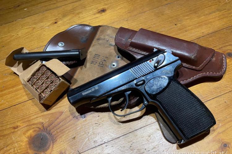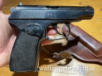VERKAUFT - Pistole Makarov aus DDR-Fertigung von 1962 mit Holster, Ersatzmagazin & Packung Munition von 1971