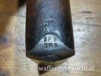 Sehr früher nummerngleicher Steyr M95 von 1897 in der Kurzausführung (Stutzen, kein gekürztes Gewehr) im Originalkaliber 8x50R im Originalzustand ohne Neubeschuss oder Fremdstempel. Truppenstempel "5. P. B. 365." vom k.u.k. Pionierbataillon Nr. 5.