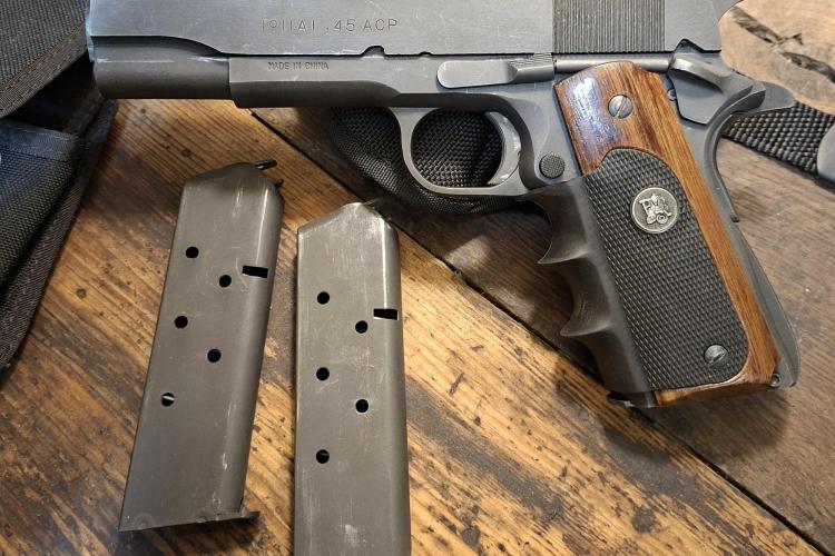 Biete meinen 1911 von Norinco zum Verkauf an. Die Waffe ist nahezu neuwertig incl Holster und 2 stk ebenfalls phospatierten Magazinen- Pachmayr Griffschalen und guten Abzug. B - Waffe ( Sammlungsbereinigung nur noch bis 1945 ) . Liegt sehr gut in der Hand und ist auch gute Verarbeitet.