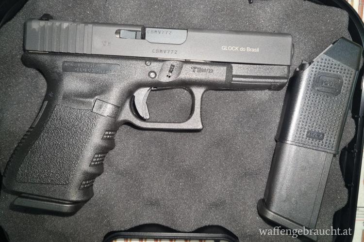 Die hervorragende Glock 19 do Brasil in 9 mm Luger im Originalbehältnis zu aktionsweisen € 568,--.