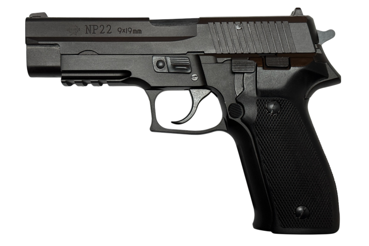 Die brünierte Norinco NP22 in 9 mm Luger ist eine erstklassige Kopie der SIG SAUER P226 mit der bekannten Entspannfunktion. Sie ist eine sehr gute, äußerst zuverlässige und günstige Waffe für Selbstverteidigung.