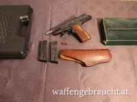 | Zubehör | 2x Magazine (original) / Puffer Patrone / Leder-Holster / Originale Schachtel / Waffenkoffer |