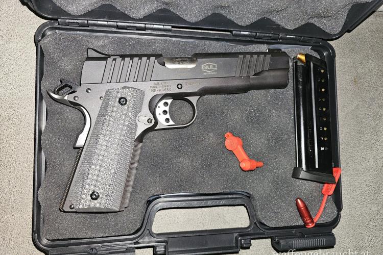 BUL Armory 1911 Government Black, die Waffe ist so gut wie neu. Ich habe sie neu erworben und ca 300 Schuss damit abgegeben. Jetzt sucht sie einen neuen Besitzer oder Besitzerin.
