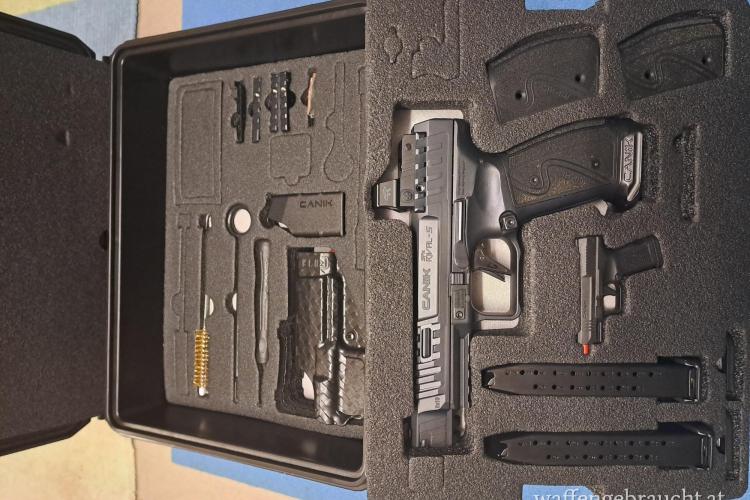| Zubehör | Holster, 3 Magazine, 3tlg Federsatz (light, normal, hard), sämtliche Adapterplatten für Rotpunktaufnahme |