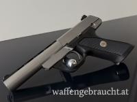 Diese gebrauchte Colt Pistole überzeugt durch ihre exzellente Verarbeitung und den zuverlässigen Zustand. Der spiegelblanke Lauf garantiert eine saubere Schussabgabe, während die ergonomisch strukturierte Griffschale sicheren Halt bietet – ideal für Sportschützen und Sammler klassischer US-Waffen.