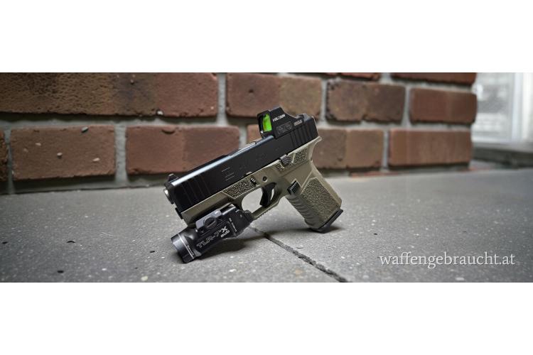 Fabriksneue Custom Glock 43X MOS Combo Holosun HS407K + Adapterplatte+ TLR-7 X Sub + SCT Manufacturing Griffstück in OD Green oder FDE Kal. 9mm Luger