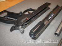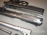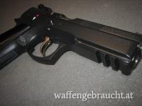 Beschreibung: halbautomatische Ganzstahlpistole mit SA/DA Abzugssystem. Offene LPA Visierung mit roten und grünen Leuchtstiften, Matchhammer und Abzug mit einstellbarem Triggerstop, Magazinkapazität Plus 2 ( 2x 19 Patronen ), beidseiteiger Sicherungshebel, langes "Viper" - Griffstück mit Picatinnyschiene, Lauf, Schlitten und Griffstück sind nummerngleich ( B 927XXX), Originale "Shadow Line" Aluminiumgriffschalen schwarz eloxiert.