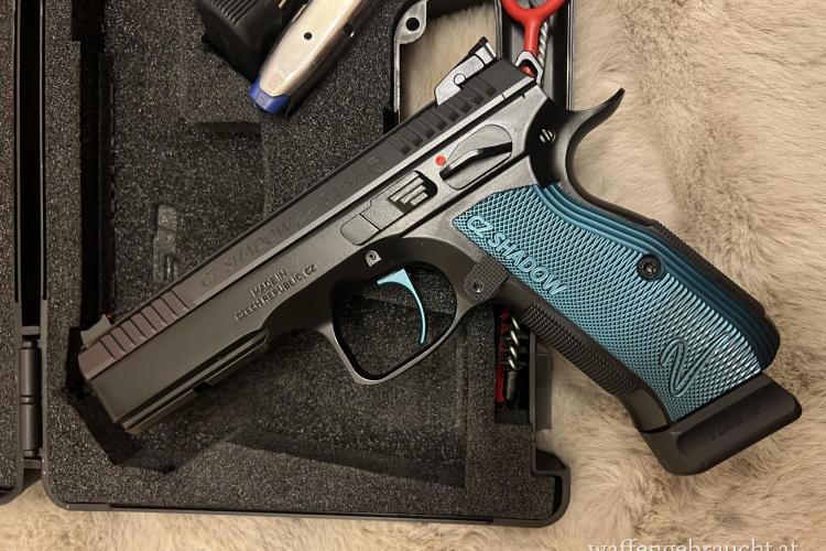 Die CZ Shadow 2 SA 9 mm Luger ist die Single Action-Ausführung der bewährten IPSC und Großkaliber-Wettkampfpistole „CZ 75 Shadow 2“. Mit blau eloxiertem Aluminium-Abzugszüngel, Aluminium Griffschalen und Combat-Hahn. Im Vergleich zur SA/DA-Variante besticht die Shadow 2 SA (trocken brechender Abzug zwischen 1.300 und 1.500 g) mit einem markant kürzerem Abzugsweg und Trigger-Reset. Material Griffstück: Aluminium Material Rahmen: Stahl Lauflänge: 125 mm Maße: 217x157x34 mm Abzug: SA Sicherung: Hammer safety notch, Manual safety Finish: Black Poly