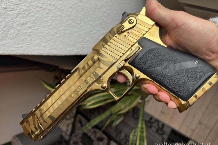 Verkaufe meine neuwertige Desert Eagle gold tiger. Kal 44 mag. Natürlich mit original koffer und allem original Zubehör.