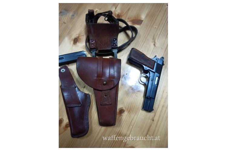 Mit 2 Magazinen, originale Gendarmerie Dienstholster und Gurtzeug.