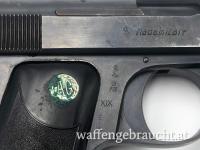 Für Sammler; Italienische Dienstpistole Galesi, Kal.: 7,65 mm mit Lederholster und Reservemagazin, brünierte Ganzstahlwaffe, seitliche Drehhebelsicherung, fixes Visier mit Visiermulde, Griffschalen aus schwarzem Kunststoff mit Firmenlogo, gebraucht, guter Erhaltungszustand, die Stahlteile fleckig, Kanten blank, Lauf innen in sehr gutem Zustand, Griffschalen mit Gebrauchsspuren,