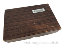 Die Walther P38 zählt zu den bekanntesten Ordonnanzpistolen des 20. Jahrhunderts. Dieses Modell stammt aus der Fertigung der Spreewerke Grottau und trägt die Kennung „cyq“, was es als Kriegsproduktion während des Zweiten Weltkriegs ausweist. Die Pistole befindet sich in gebrauchtem, aber sammelwürdigem Zustand und wird mit einer originalen Walther-Schachtel geliefert. Typisch für diese Baureihe sind die rutschfesten Bakelit-Griffschalen und das robuste Stahlgehäuse. Sammler, geschichtlich interessierte Sportschützen oder Liebhaber deutscher Waffentechnik erhalten hier ein authentisches Stück Geschichte mit hohem Wiedererkennungswert.