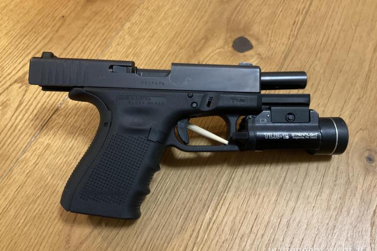 Lichtmodul (Streamlight TLR 1s), Oberschenkelholster (Sarafiland für Glock 17 und 19) und zwei Glock 15+2 Magazine separat erhältlich.