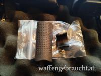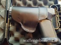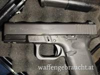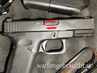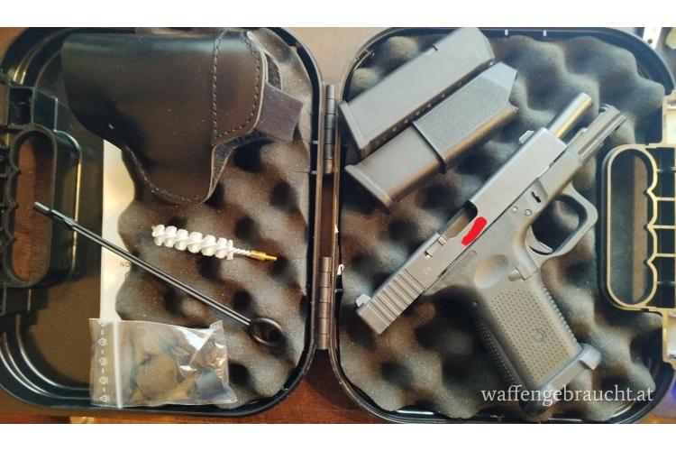 Angeboten wird eine Glock 19 Gen 4 mit einem LoneWolf-Griffstück, so wie auf dem Bild zu sehen ist, inklusive Zubehör (Das Holster ist aus Echtleder).