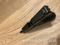 Besonderheit dieser Waffe sind die nicht vorhandenen Front Serrations und der halbkreisförmige Ausschnitt am Griffstück (siehe Fotos).