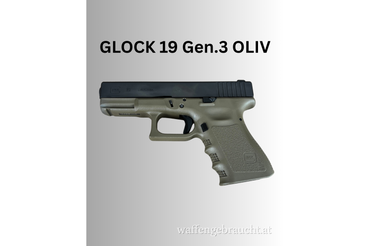 TOP Gelegenheit!!! Biete eine fast neuwertige (ca. 300 Schuss) Glock 19 in Oliv, besserer Abzug und bessere Visierung wurden nachgerüstet. Inkl. Original Glock Koffer