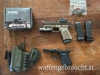 | Zubehör | 2 Reservemagazine, Olight PL3+passender IWB Holster, verschiedene MOS Adapterplatten, Originales Griffstück+SCT Griffstück |