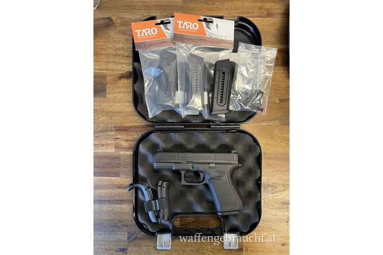 Dabei sind insgesamt vier Glock 10-Schuss Magazine, zwei davon noch in der OVP und der originale Lieferumfang (Putzstab, Bürste, Backstraps,…)