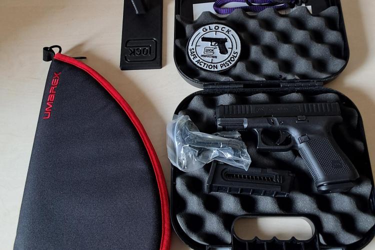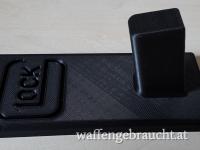 Inkl. Originalzubehör, Glock Pistolenständer, Pistolentasche, Glock Aufnäher und 50 Schuss Munition.